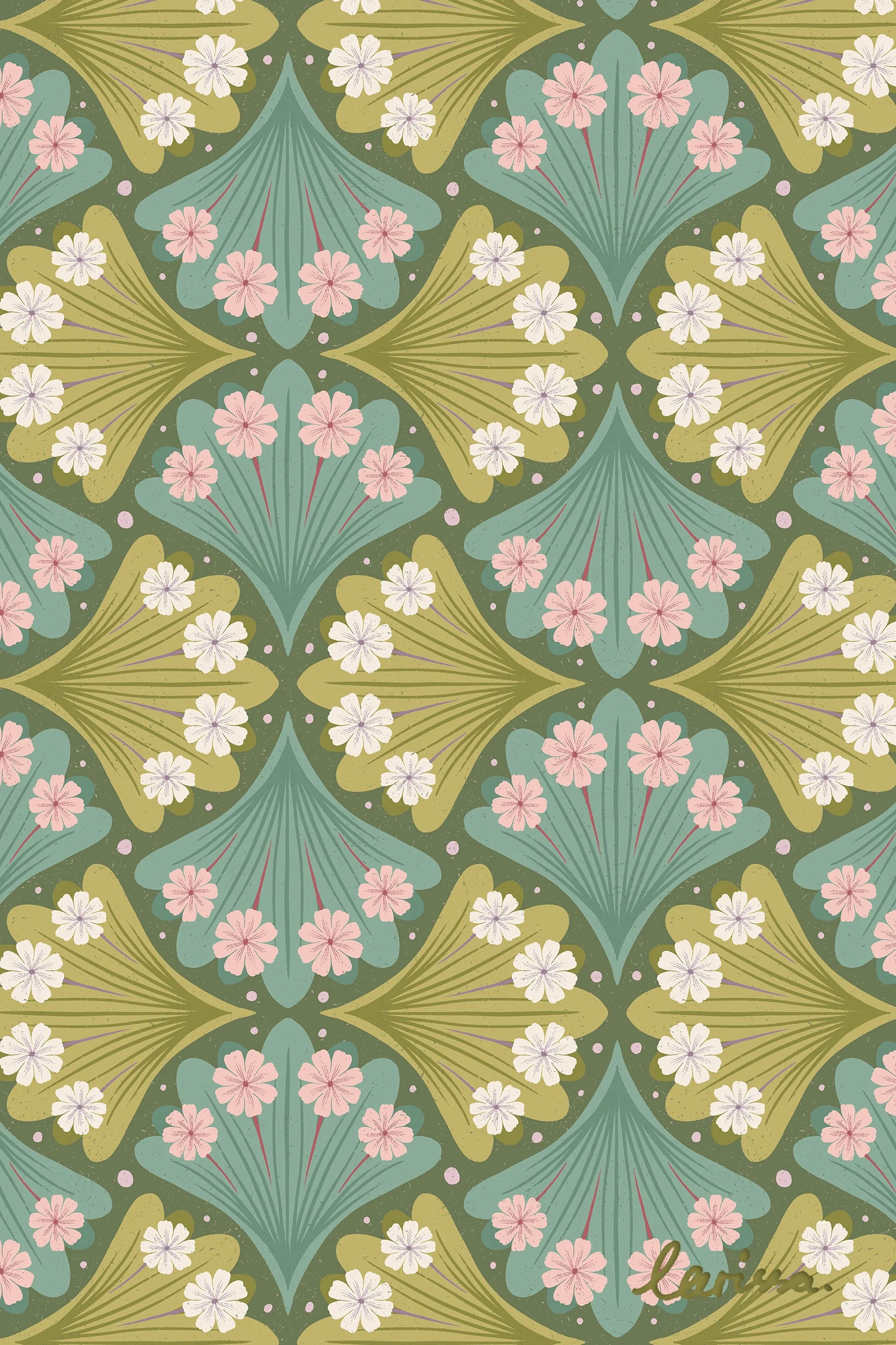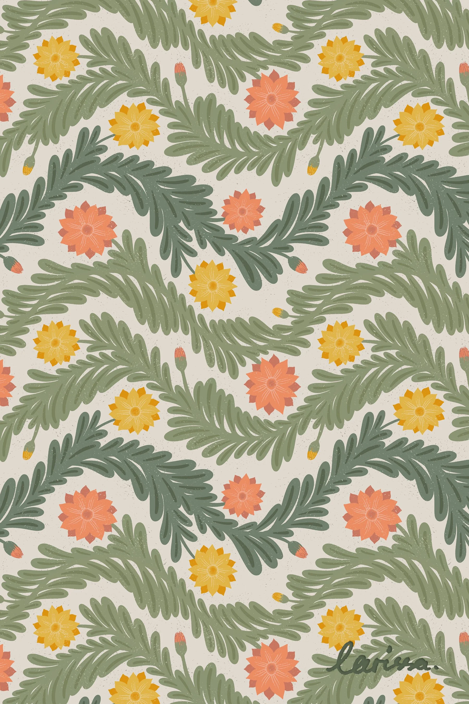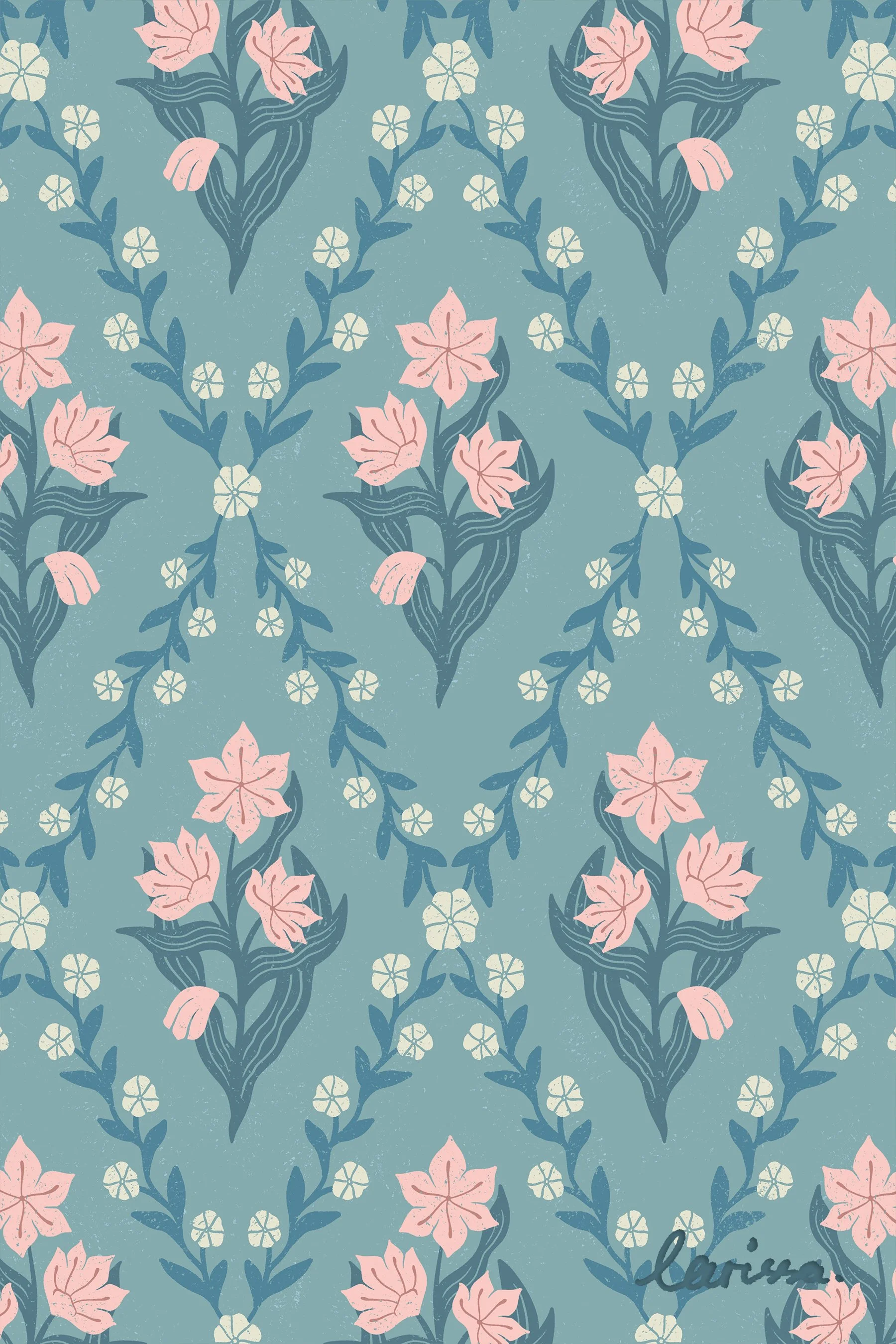 This month (October 2025) we will look at creating patterns in chevron and herringbone layouts in Procreate. You will find two tutorials on creating floral patterns in a chevron structure and a herringbone structure respectively. There are also lots of resources for you to download so you can use them on your pattern designs.