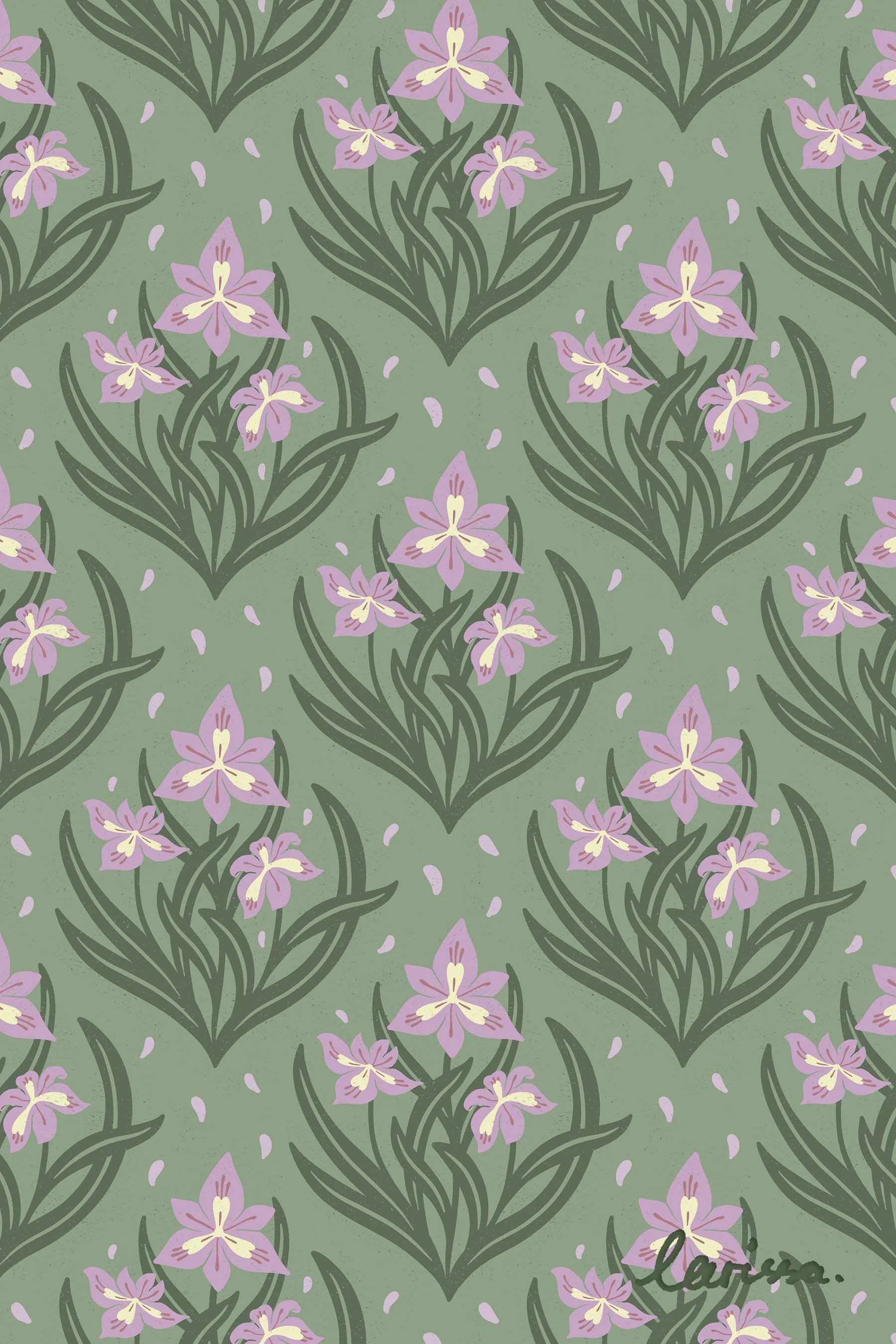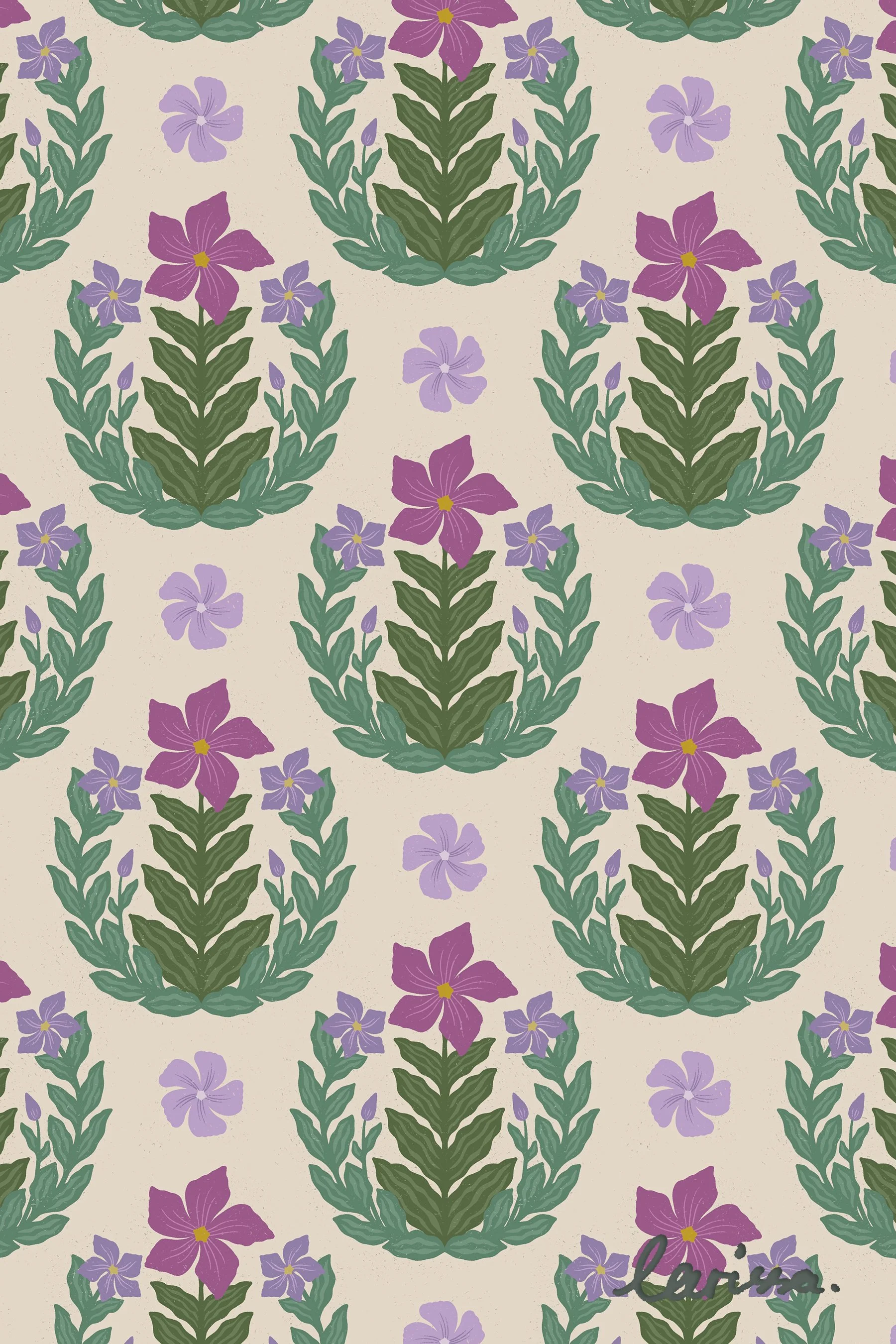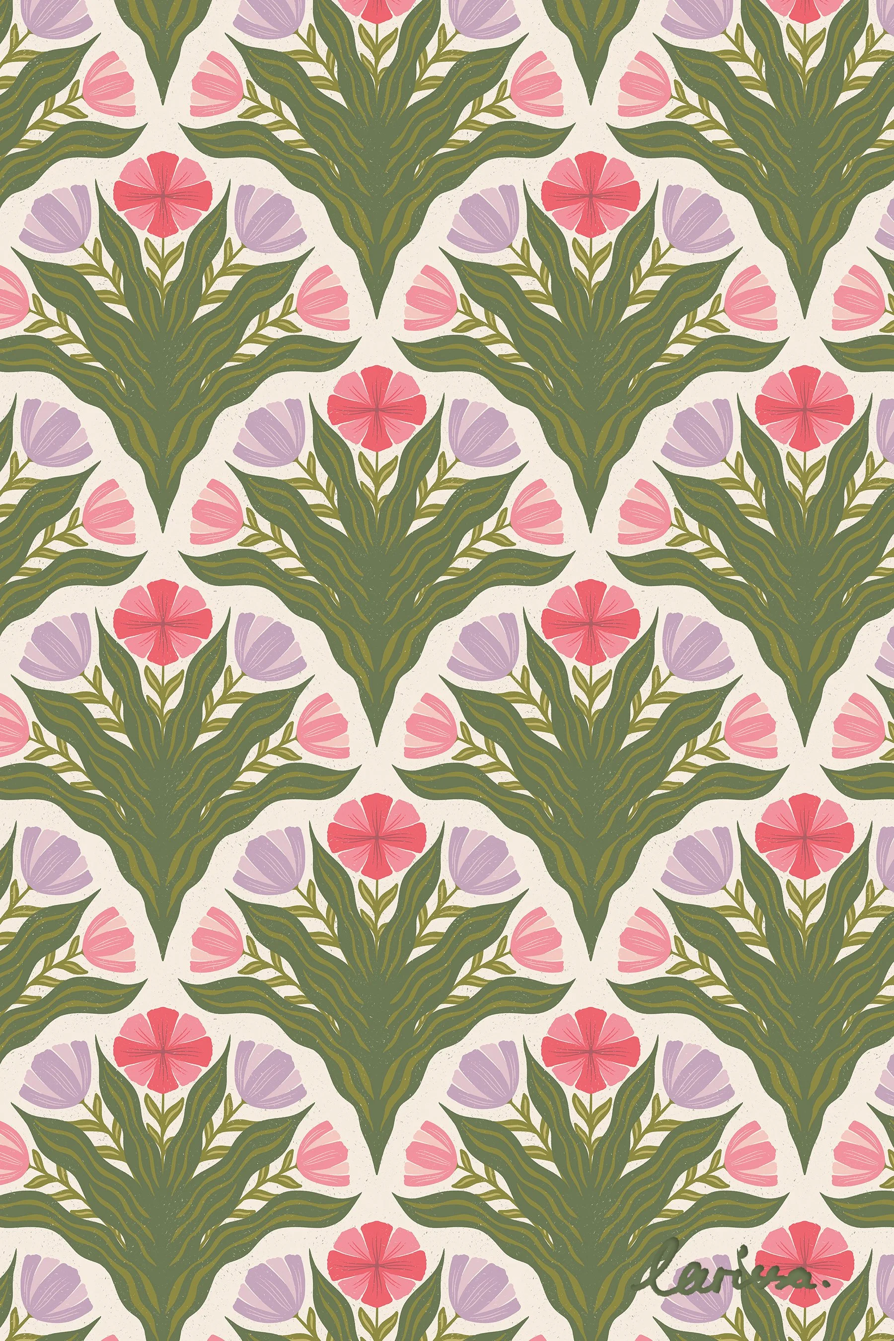 This month (October 2025) we will look at creating patterns in chevron and herringbone layouts in Procreate. You will find two tutorials on creating floral patterns in a chevron structure and a herringbone structure respectively. There are also lots of resources for you to download so you can use them on your pattern designs.